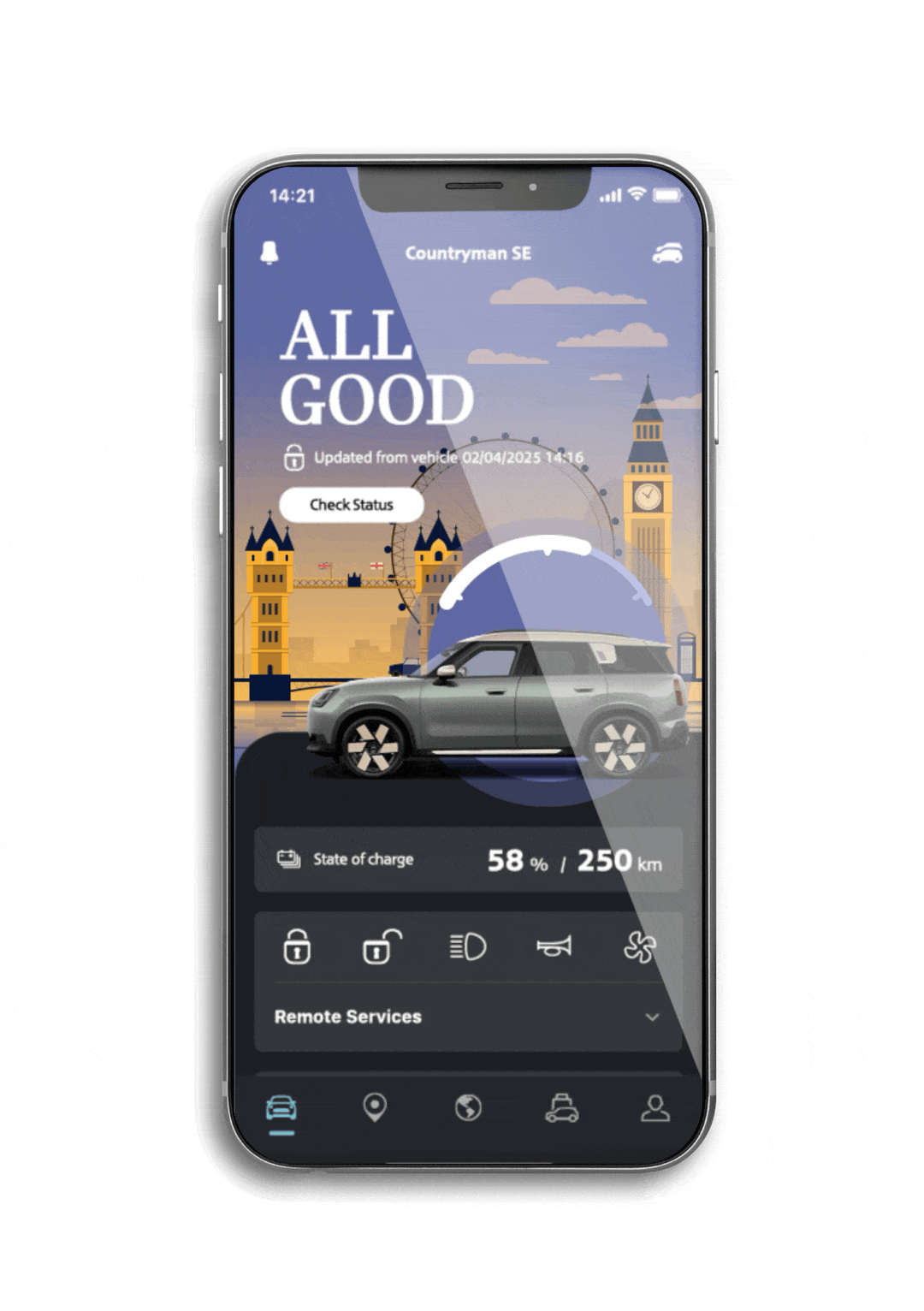 - Pristupite detaljnim informacijama o vašem MINI-u, uključujući njegov trenutni status i potrebe održavanja.