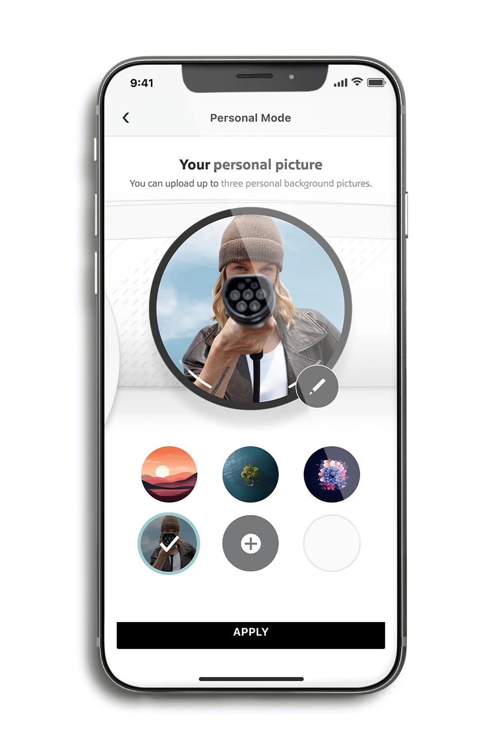 - Izaberite između podrazumevanih slika. Ili čak otpremite svoju ličnu sliku u automobil putem MINI aplikacije.