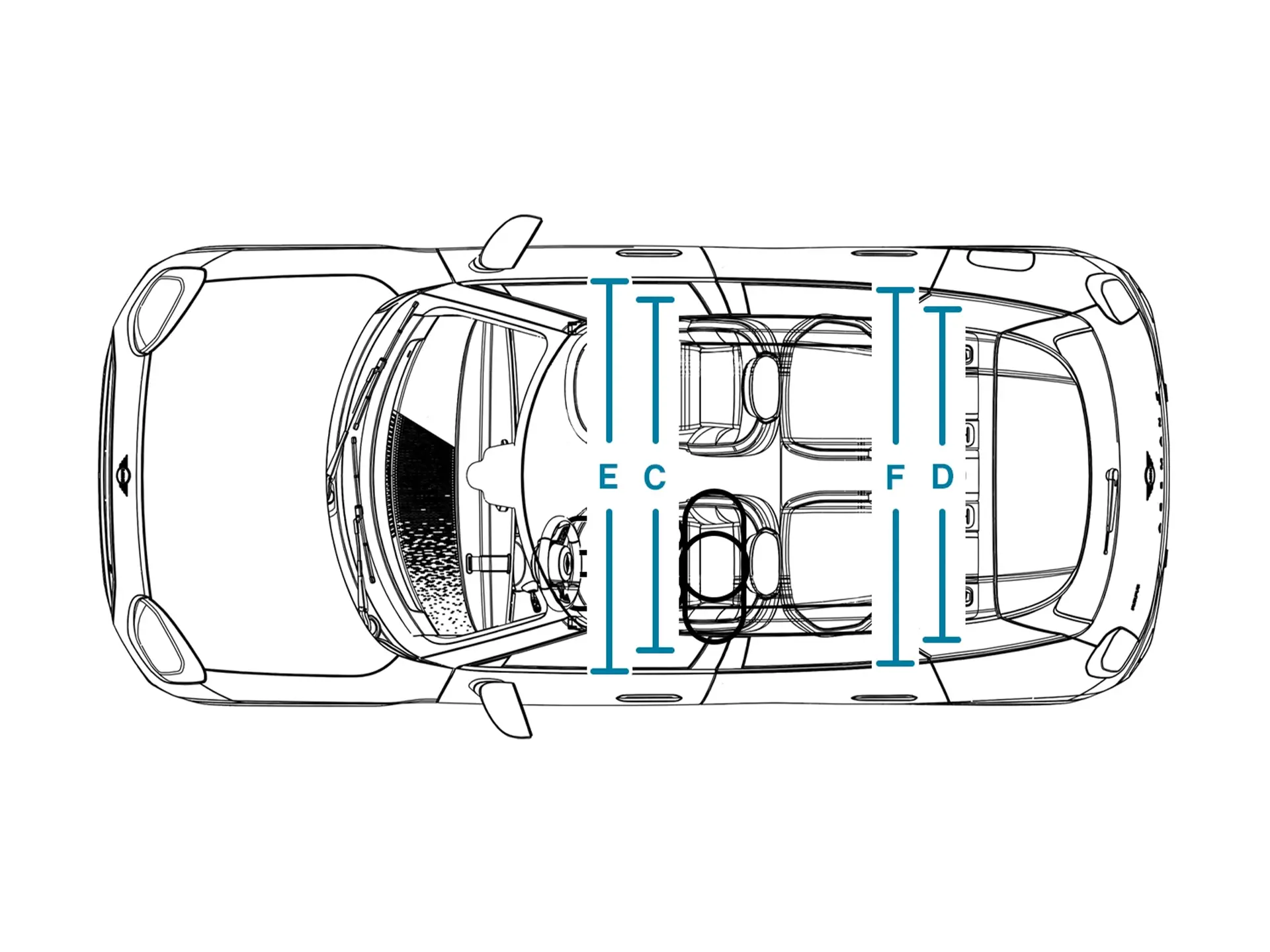 | (B) Efektivni prostor za noge, zadnji deo vozila | 822 mm |